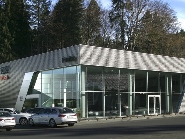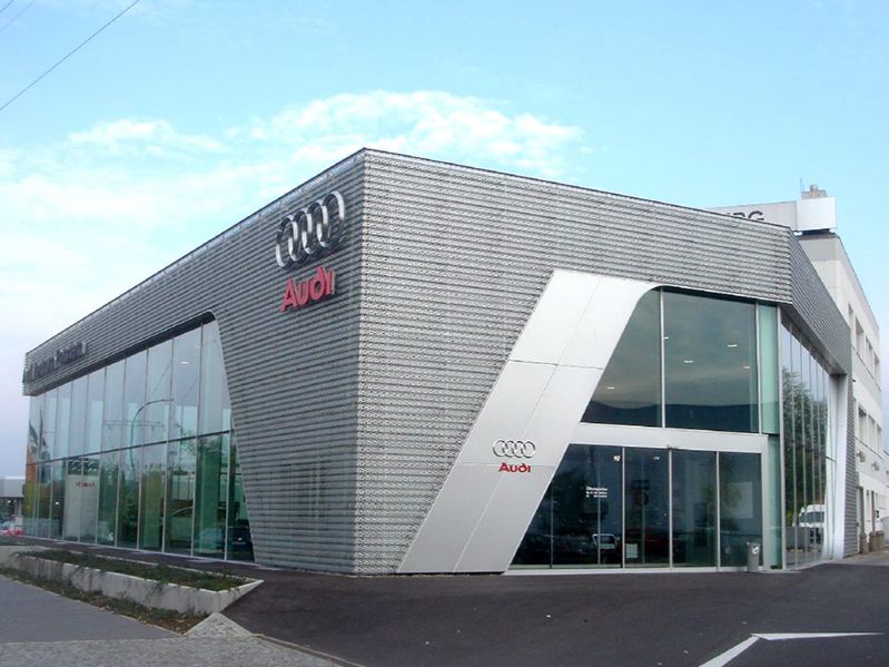 Der Automobilhersteller Audi setzt bei seinen Vertriebshäusern weltweit auf ein einheitliches architektonisches Erscheinungsbild, das klar die Markenwerte widerspiegelt. Die Fassadengestaltung wurde so konzipiert, dass Dynamik, Asymmetrie und Transparenz als prägende Gestaltungsmerkmale in den Vordergrund treten.