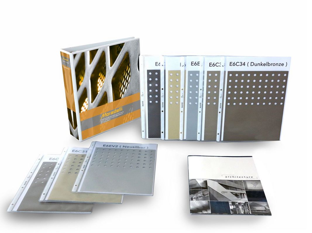 Ab sofort können Sie unseren professionellen Eloxalmusterordner mit Lochblechen in sieben Standard-Eloxalfarben sowie einem Vergleichsmuster in RAL 7016 (pulverbeschichtet) für eine Schutzgebühr von 120 € erwerben. Dieser Betrag wird Ihnen bei Auftragserteilung vollständig angerechnet.
